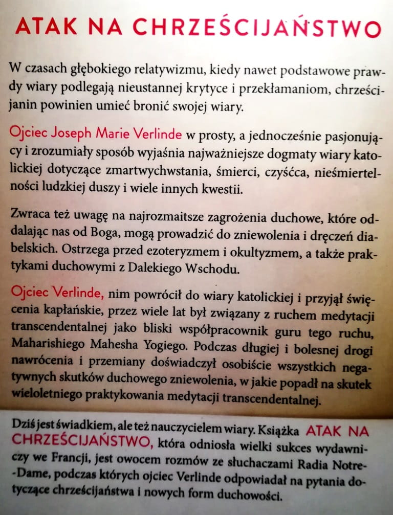 W rozdziale "Chrześcijaństwo a praktyki Wschodu" autor odpowiada na pytanie o medytację transcendentalną i wie o czym mówi, bo w przeszłości, nim został kapłanem, sam ją praktykował.