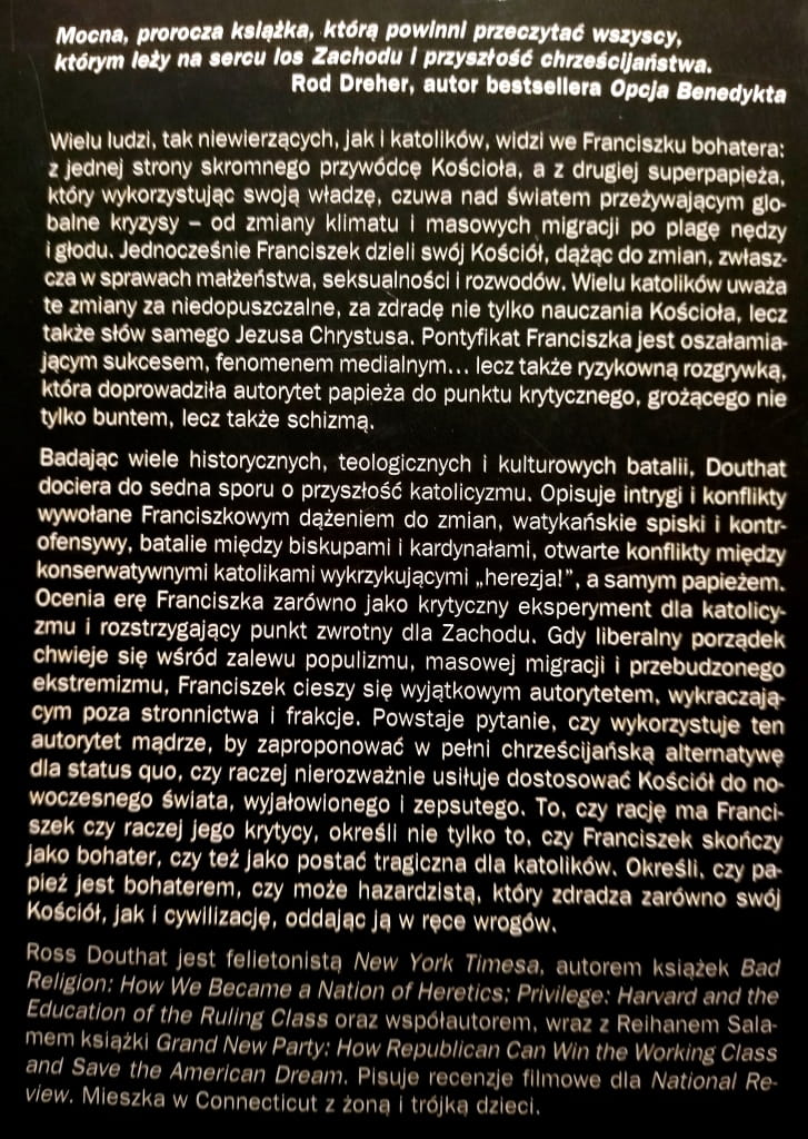 "Kto poszukuje doskonałości - uważa Douthat - niech zacznie od poszukiwań doskonałości własnej duszy. Kto chce zbawić swój kraj, niech wcześniej zadba o zbawienie własne" (z Wstępu ks. Roberta Skrzypczaka).
